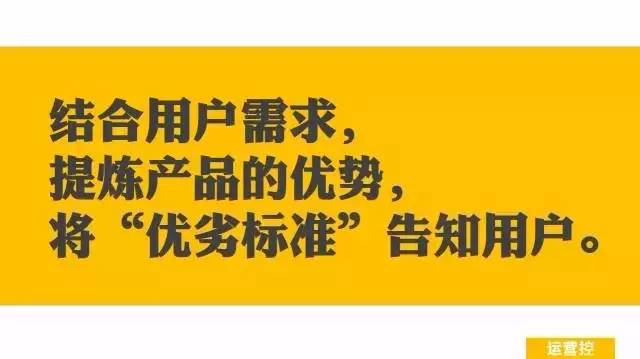 一般情况下,用户常用品牌知名度做为判断产品的标准,而面对不知名产品时,用户选择的标准是更缺失的,所以初创产品更需要建立并告知“优劣标准”。如果你经常在淘宝购物,你会发现淘宝文案最常用此方法,下次购物的时候可以特别注意一下。