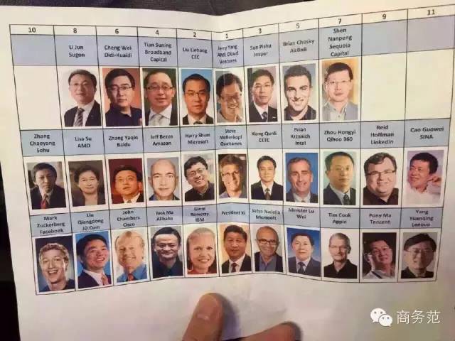 参会阵容有多豪华呢~习大大就不用说了,BAT(百度、阿里、腾讯)、京东、搜狐、奇虎360、新浪、联想的CEO都来了。美国的微软、苹果、IBM、亚马逊、英特尔也通通都在。总之个个都是耳熟能详的大企业。