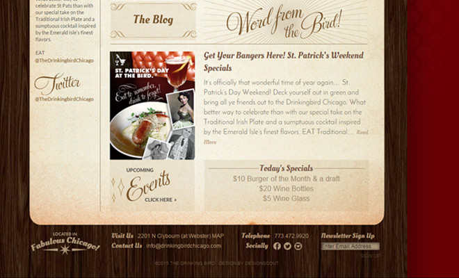小企业的网站应该设计成和公司本身的气质很相近的感觉。 这同样也会引导相同气质的人成为该公司的客户,比方上面我所举的列子:芝加哥的 Drinkingbird 餐厅。