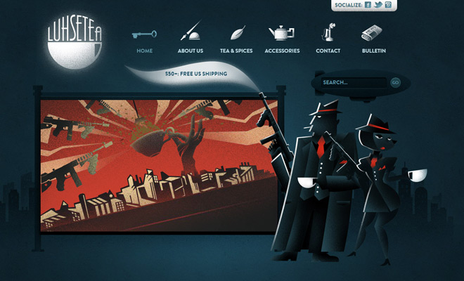 Luhse Tea 是另外一个极好的例子,代表着网站的设计具有自己独特的风格。 页面布局是黑色的,明显的带有着胶片标号的风格。 背景和图标上面那些大量的带有噪点的纹理给这个网站以老旧电影的感觉。